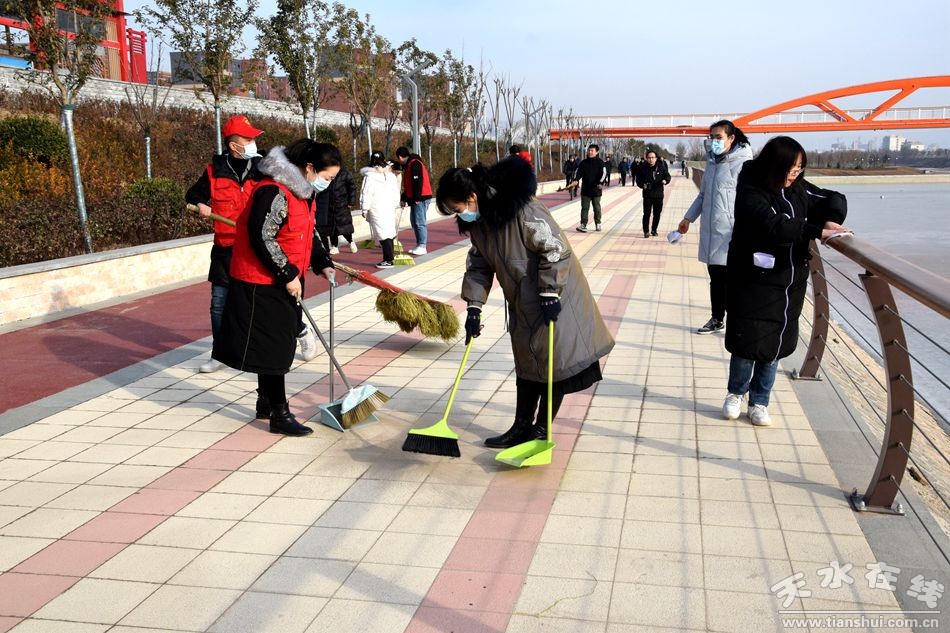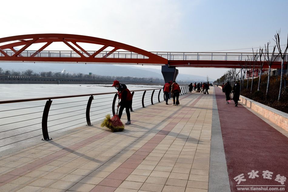 2020年12月31日,新年來臨之際,天水市城投公司黨委以“迎新年、促發(fā)展”為活動(dòng)主題,展開環(huán)衛(wèi)清掃志愿服務(wù)活動(dòng)。公司組織黨、團(tuán)員30余人,配合保潔人員,對(duì)開放后的藉河二期風(fēng)情線3號(hào)濕地段進(jìn)行環(huán)衛(wèi)清掃志愿者活動(dòng),公司在家黨委成員帶頭參加,黨團(tuán)員積極響應(yīng)、踴躍參與。